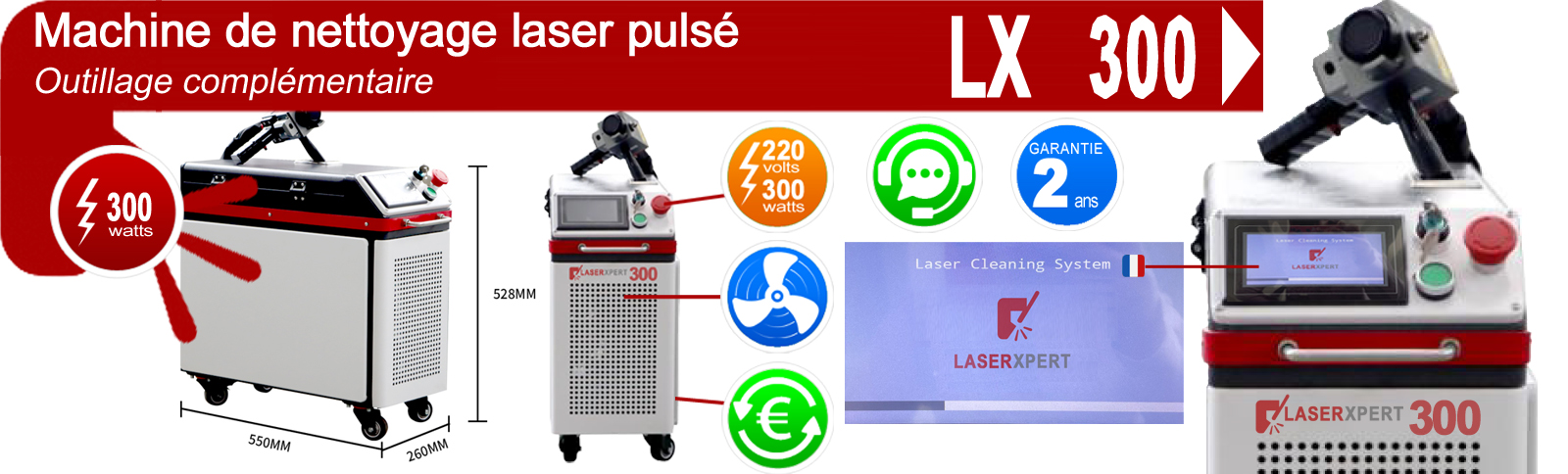 Le LX 300 révolutionne le nettoyage de petite surface : zéro produit chimique, zéro abrasion, zéro contrainte. Compact, déplaçable et ultra-précis, il élimine rouille, cire, vernis et impuretés sur bois, métal ou plastique… en un instant. Une technologie propre, rapide et rentable, pensée pour les artisans, carrossiers et professionnels qui veulent passer à autre à une technologie viable et éprouvé, un outils complémentaire pour votre atelier qui saura se rendre indispensable.